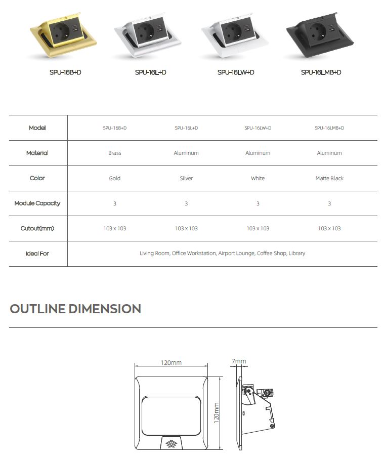 Features a stylish and user-friendly slide tab which allows convenient access to power, charging and data outlets when required.