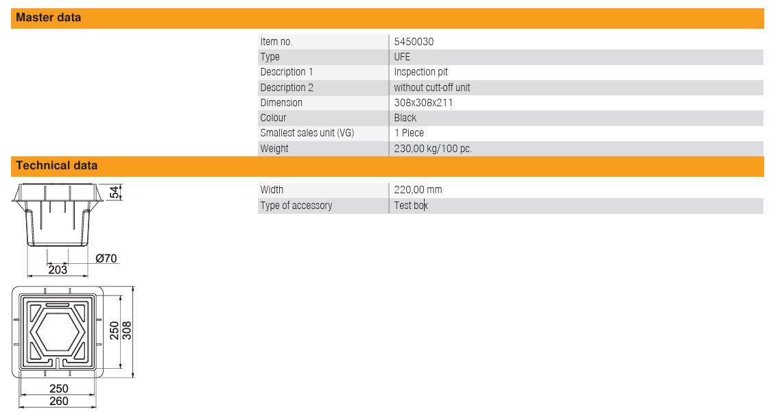 You're reviewing:Underfloor Inspection pit, without cut‐off unit: 308x308x211_UFE - (India) - OBO Bettermann